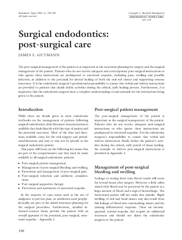 Pdf Surgical Endodontics Post Surgical Care James Gutmann Academia Edu